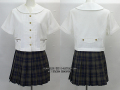 大分県大分市にある私立校の制服セットです。夏服は、大きな襟の白いオーバーブラウスにチェックスカートの組み合わせで、ブラウスのポケットに柄が入っているのが特徴です。胸元には特に何も付けません。 ※特記事項としては、正面に汚れと全体に黄ばみがあります。その他については、とくに目立つ傷や汚れはありません。 |